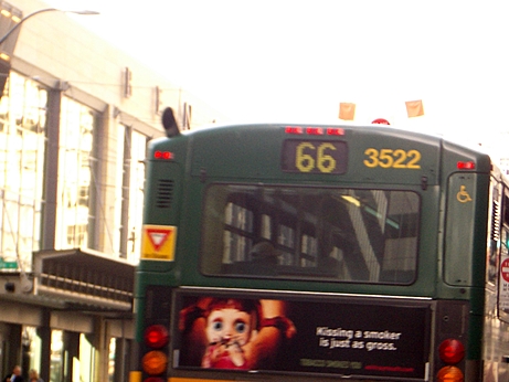 In fact, when I was stopped, I didn't know why. To point out the sign that I had ignored, the officer told me look behind and there was a bus blocking whatever it is he wanted me to see. He then told me to wait for the bus to pass by so I could see the signs!